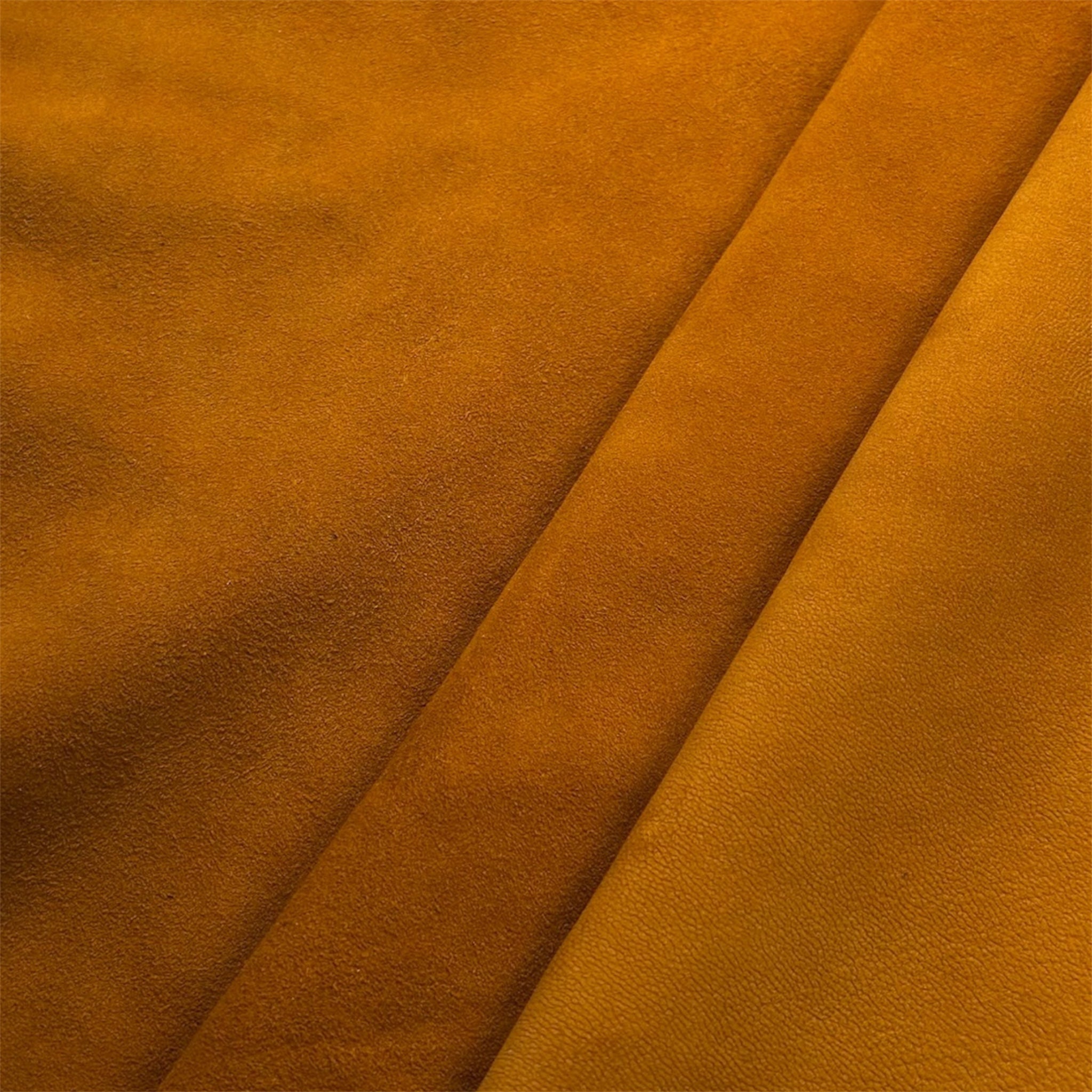 Thick Orange-Yellow Hues Suede Lambskin Pieces. Soft sewing hides. Amazing leather for bag and purse crafters will be long-lasting. Our mission is to provide only the highest quality Italian leather to other leather workers, crafters of all kinds, small businesses, or shops for your projects.