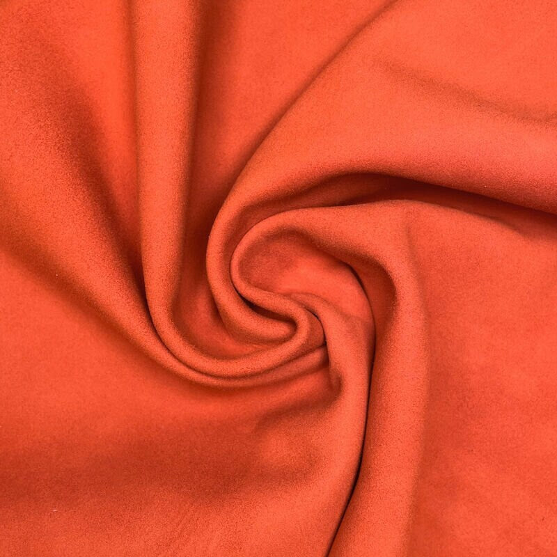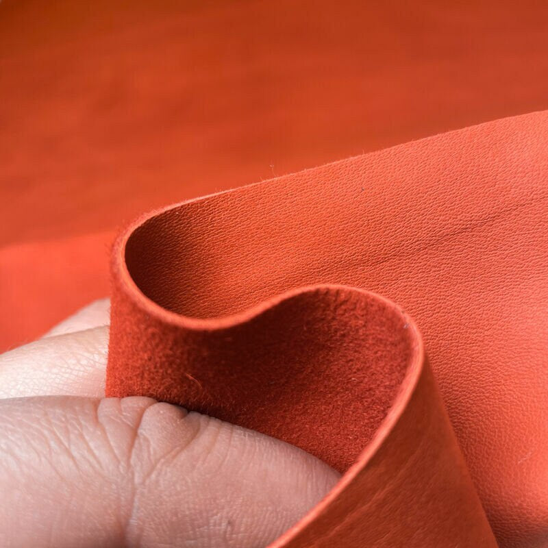 - Orange lambskin suede leather hides for sewing. Very nice fabric material. Beautiful leather material for DIY projects! Quite thick but easy to work with!