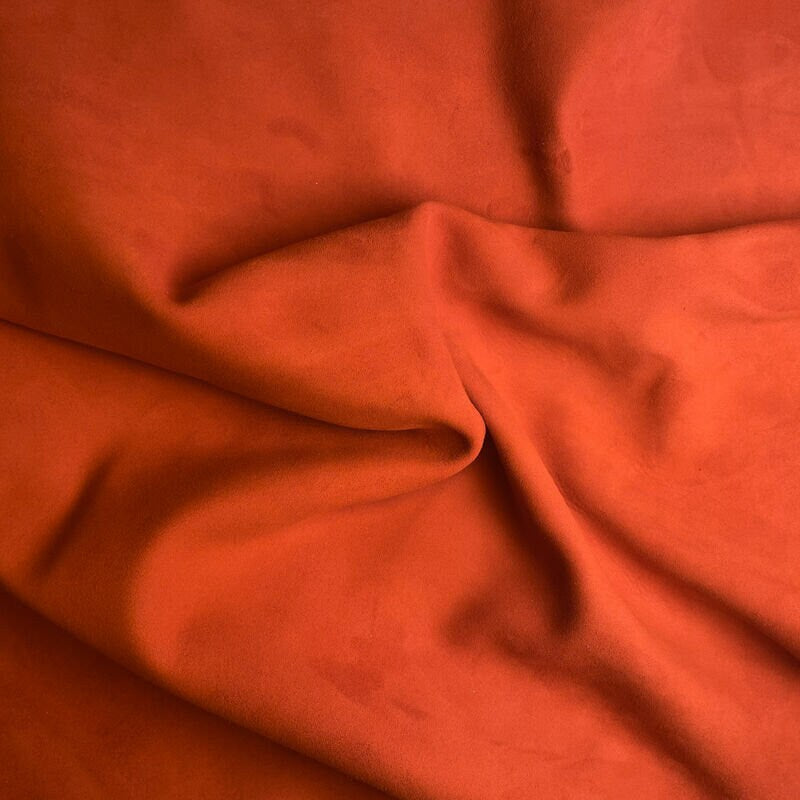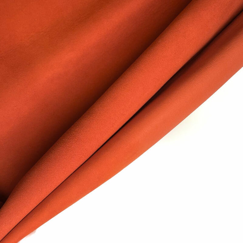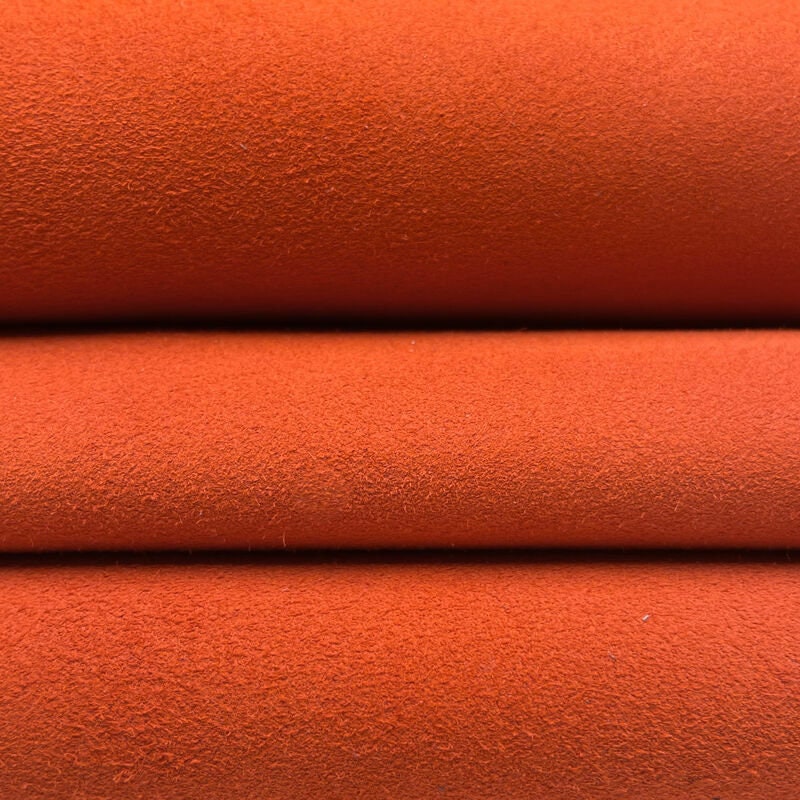 High-quality lambskin suede leather hides in pumpkin orange color. Soft leather for your best projects! Our mission is to provide only the best quality Italian leather to other leather workers, crafters of all kinds, small businesses, or Etsy shop for your own projects.