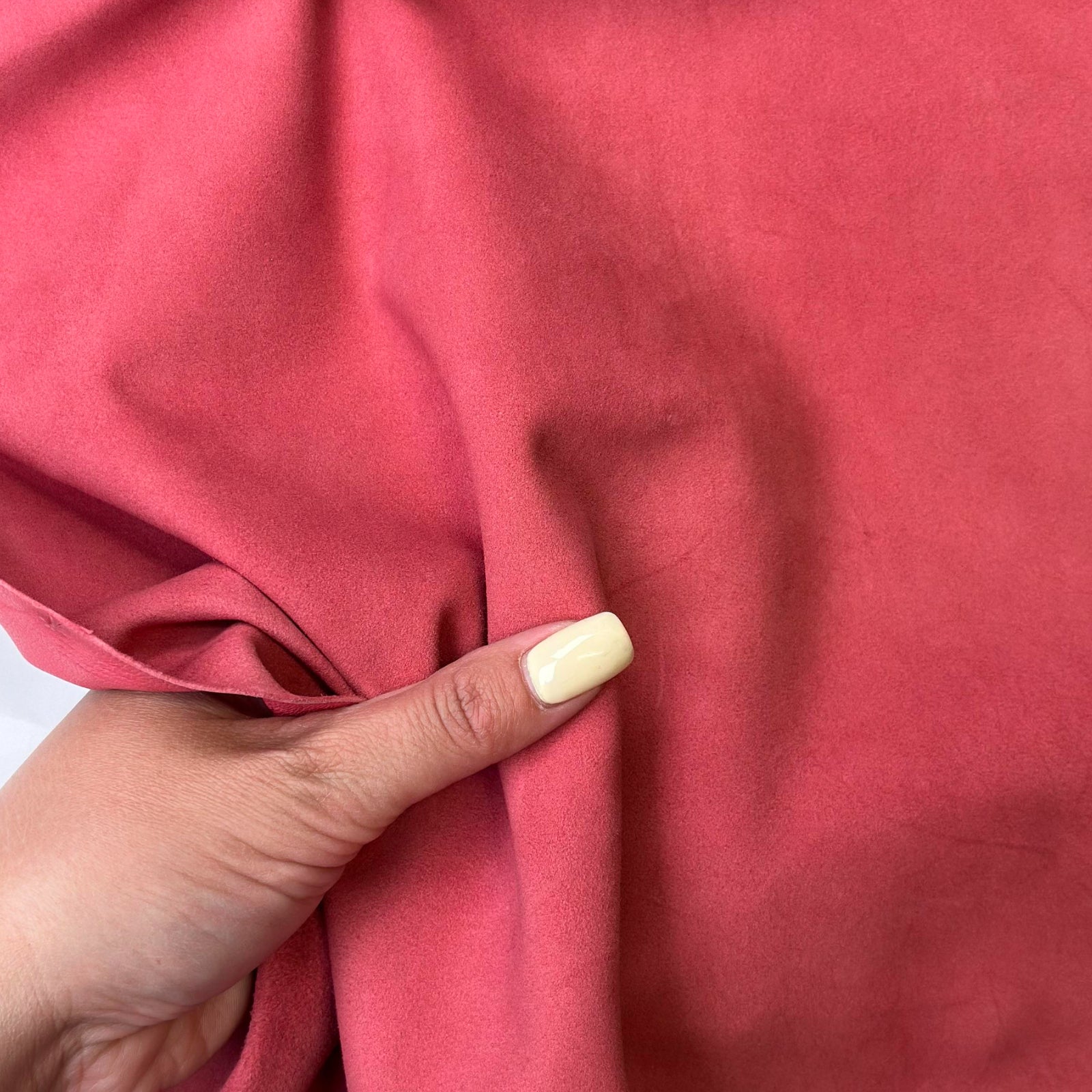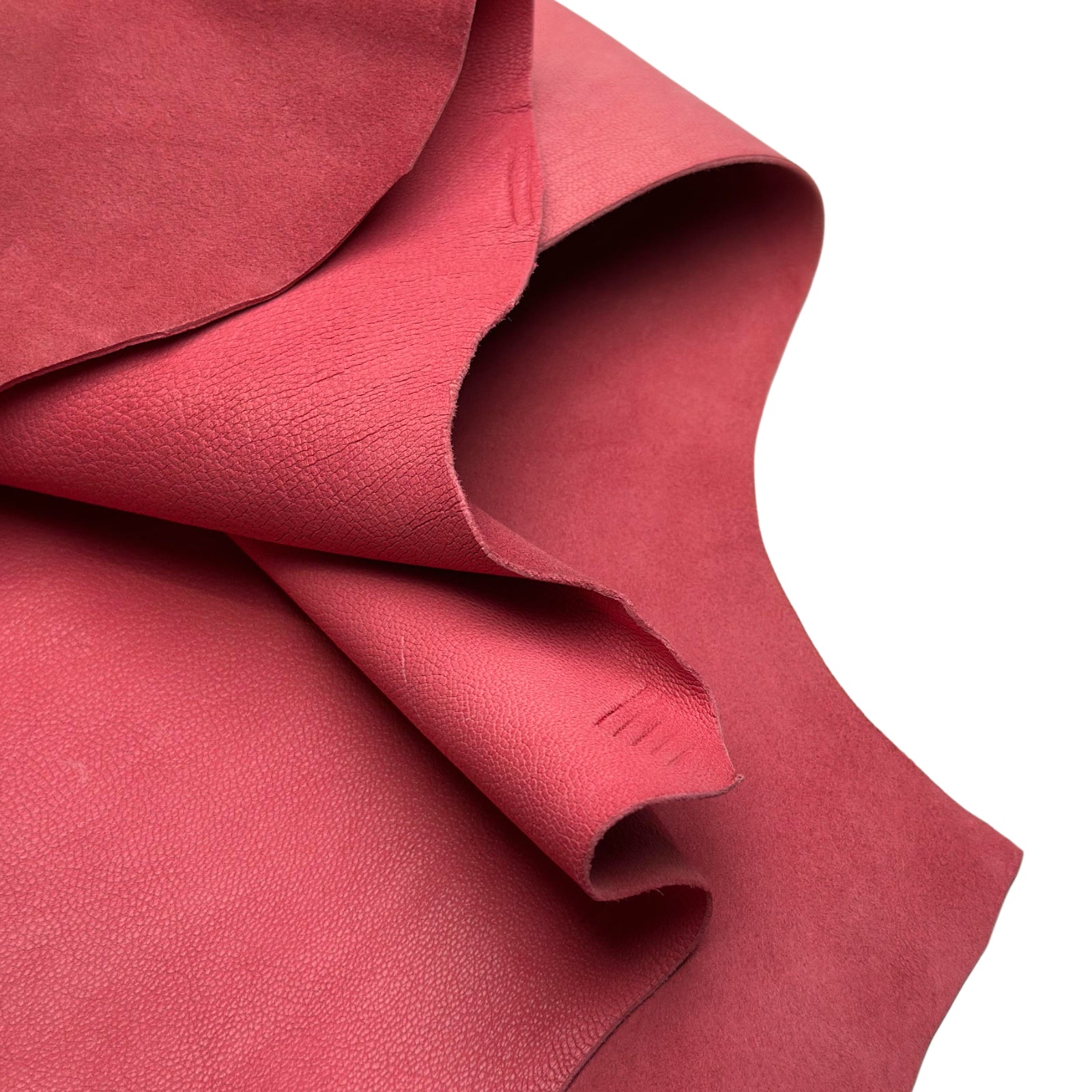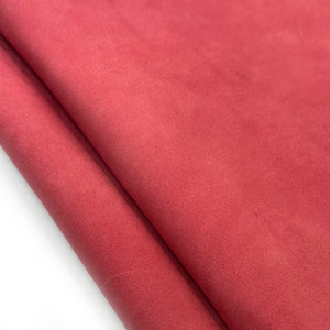 Add a touch of luxury and color to your creations with this stunning Raspberry Red suede lambskin leather. Imported from Italy, this leather features a soft, velvety nap and a beautiful, deep red hue that stands out in any design.