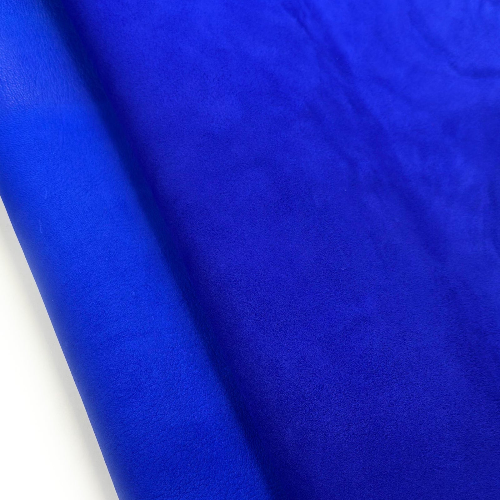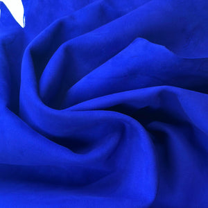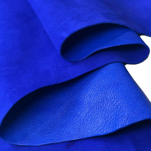 This royal blue suede leather hide features a vibrant, velvety finish that's perfect for small to medium projects. Its smooth nap and supple texture.