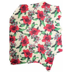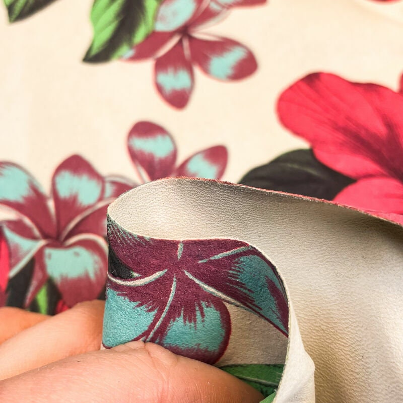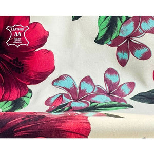 Leather with hawaii flower print. Lambskin with flower print for your best projects! Our mission is to provide only the best quality Italian leather samples to other leather workers, crafters of all kinds, small businesses or Etsy shop for your own projects.