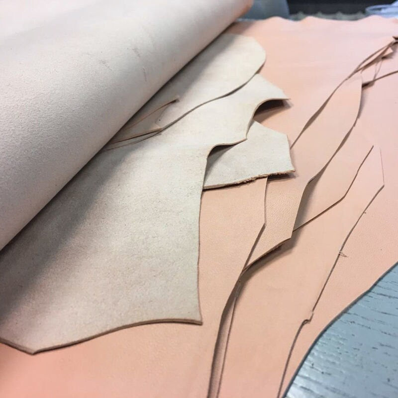 -Beige Lambskin Leather pieces. Naked color Sheep skin sheets for sewing, crafting, shoe making, earrings and jewelry. Soft and pleasant for touch. Durable Leather fabric for Leather jackets. High Italian quality. Try it!