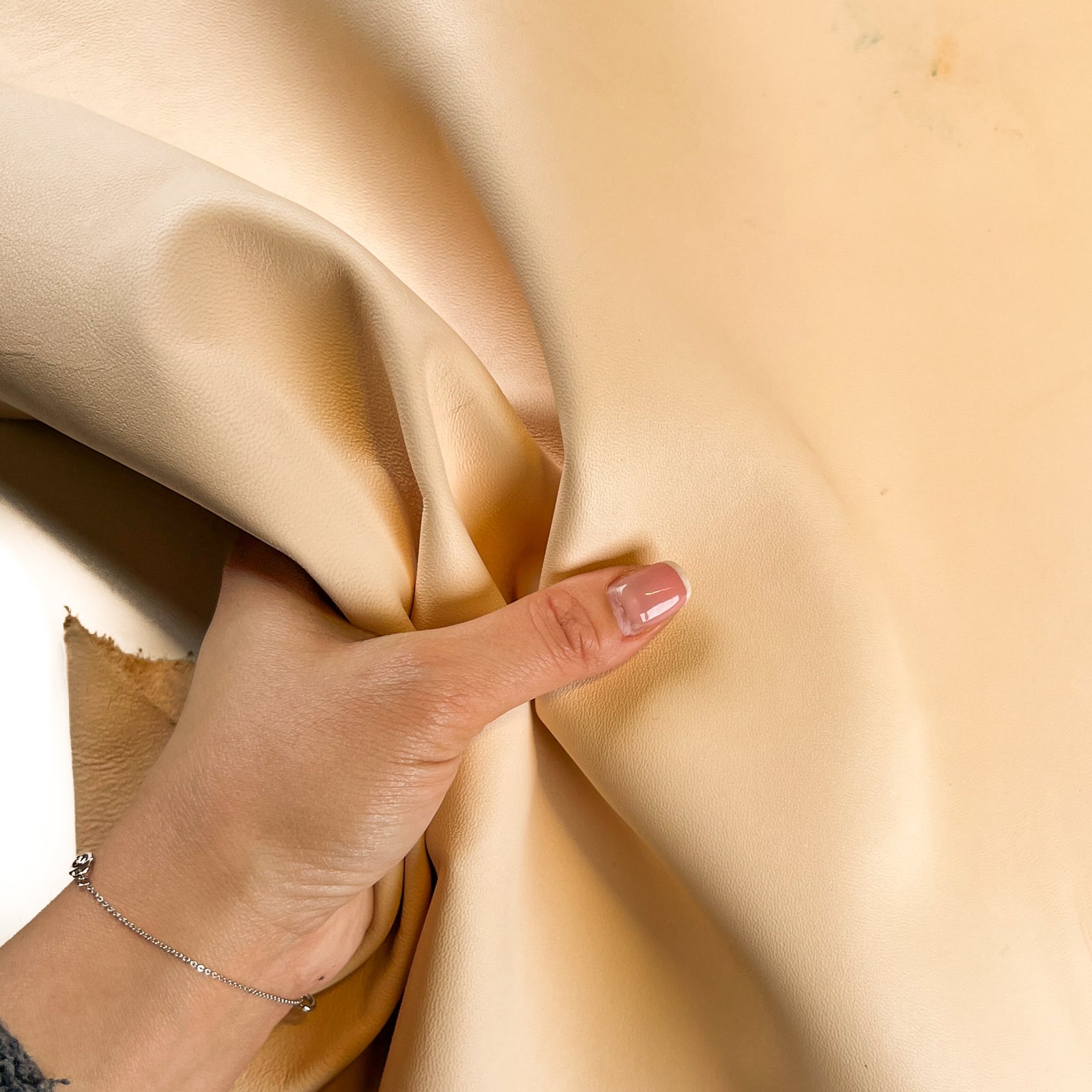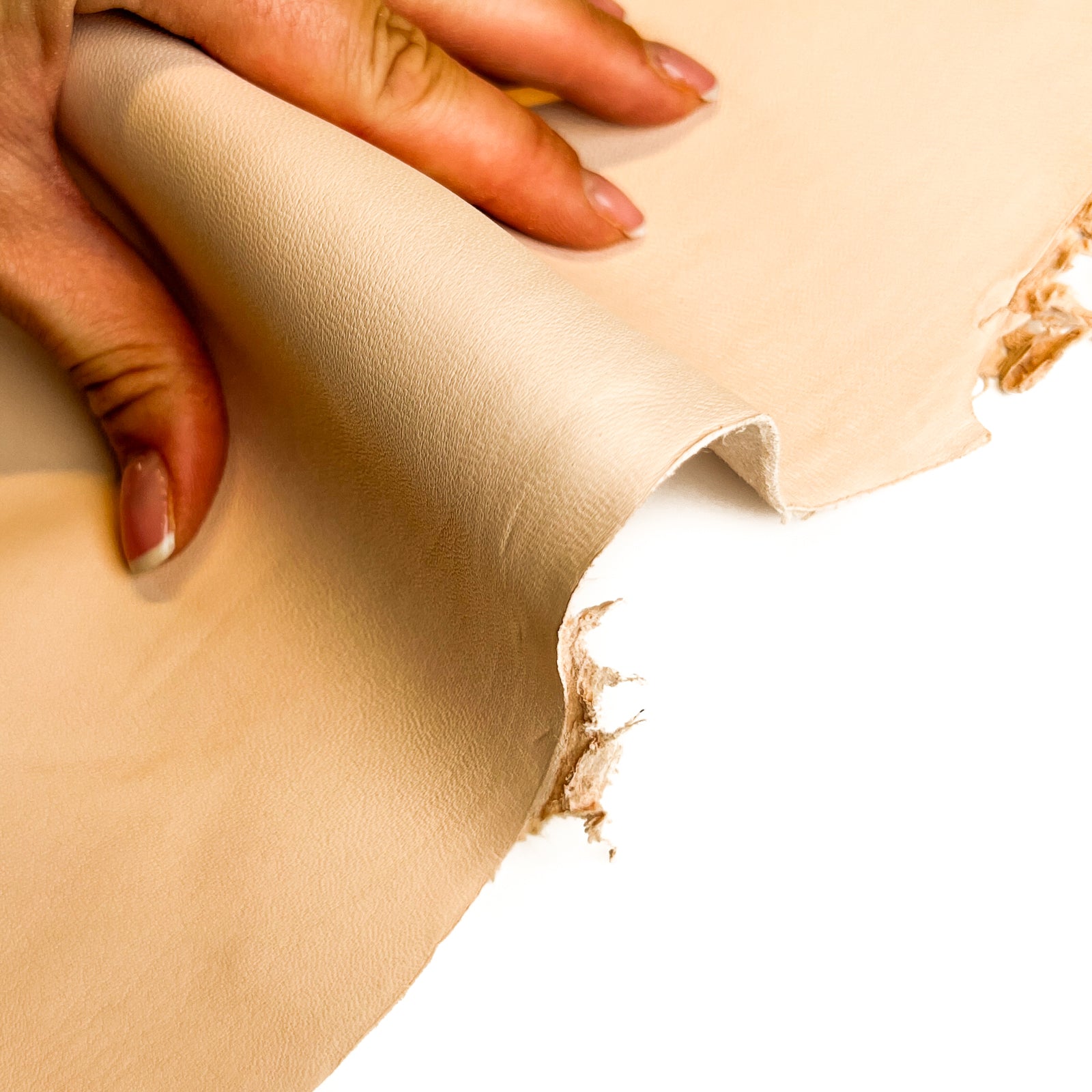 Beige vegetable-tanned lambskin leather hides! Thick pieces. Amazing leather for bag and purse crafters will be long-lasting. Our mission is to provide only the highest quality Italian leather to other leather workers, crafters of all kinds, small businesses, or shops for your projects.
