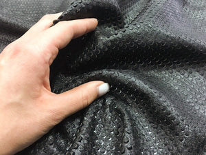 Black Leather fabric, Scaled leather sheets, Leather with holes, laser cut leather fabric, Shiny sheep skin material, natural animal skin pieces, mermaid scale type holes, leather material for sewing, solde per piece, called BLACK MERMAID