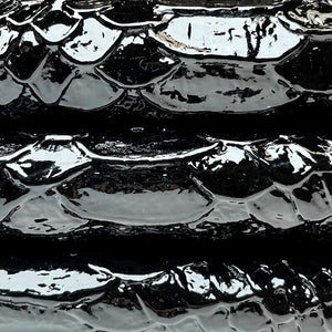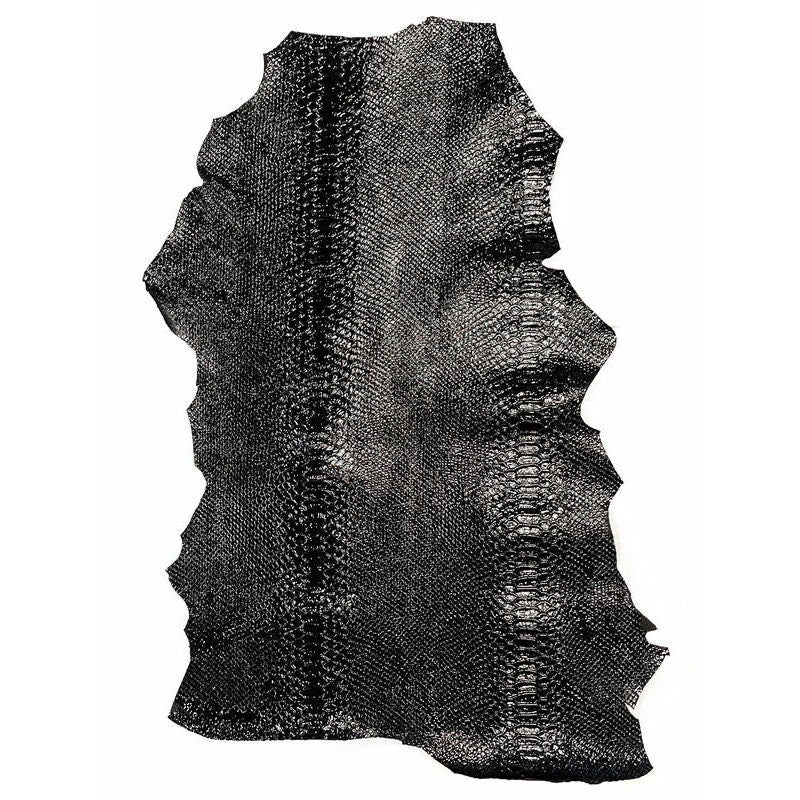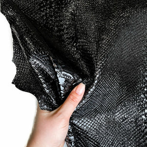 - Black leather pieces with snake texture. Leather are quite thick and will definitely hold it's form. Hides are shiny polished. Leather will be perfect for all kind of DIY jewelry. High quality Italian lambskin.