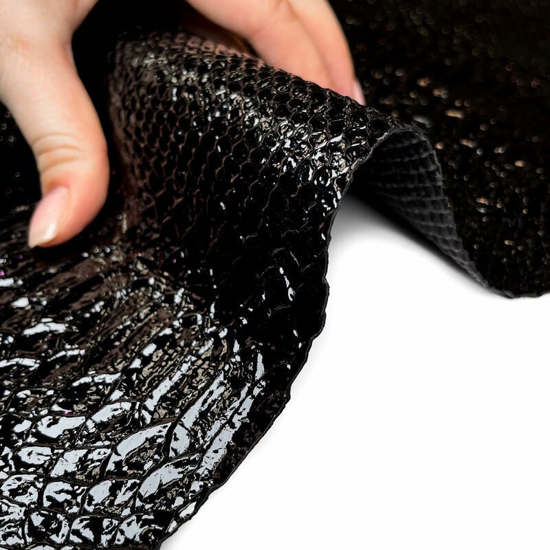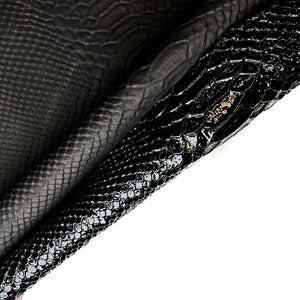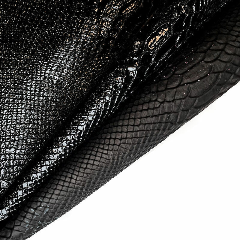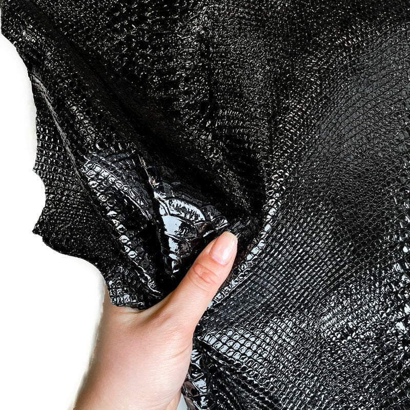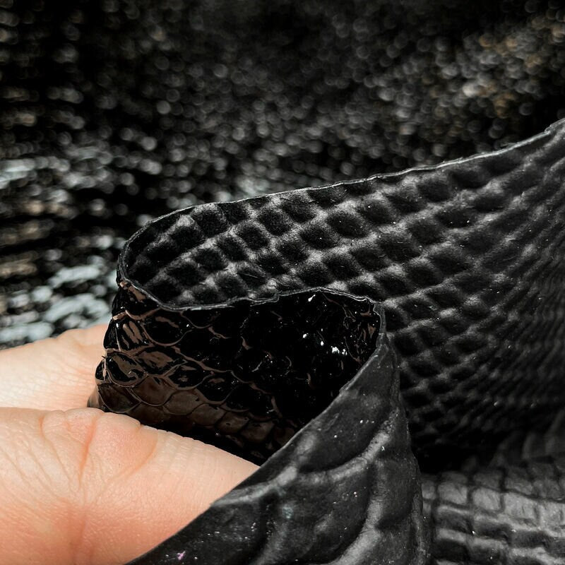 High-quality patent leather with snake print. Black animal print pieces. Shiny polished snake texture for your best projects! Our mission is to provide only the best quality Italian leather samples to other leather workers, crafters of all kinds, small businesses or Etsy shop for your own projects.