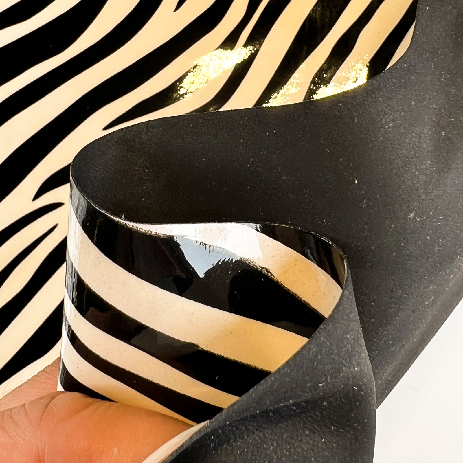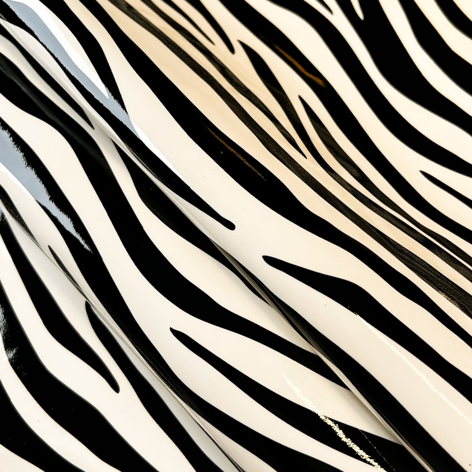 Shiny patent leather hides with beautiful zebra print. White and black patent for sewing. Amazing leather for bag and purse crafters will be long-lasting. Our mission is to provide only the highest quality Italian leather to other leather workers, crafters of all kinds, small businesses, or shops for your own projects.