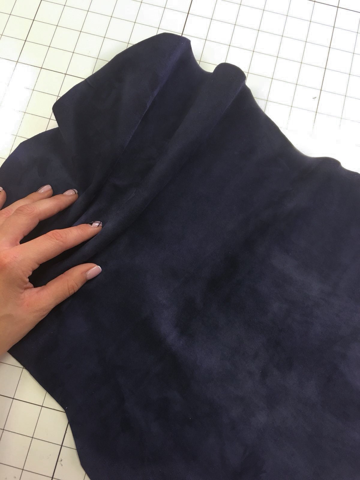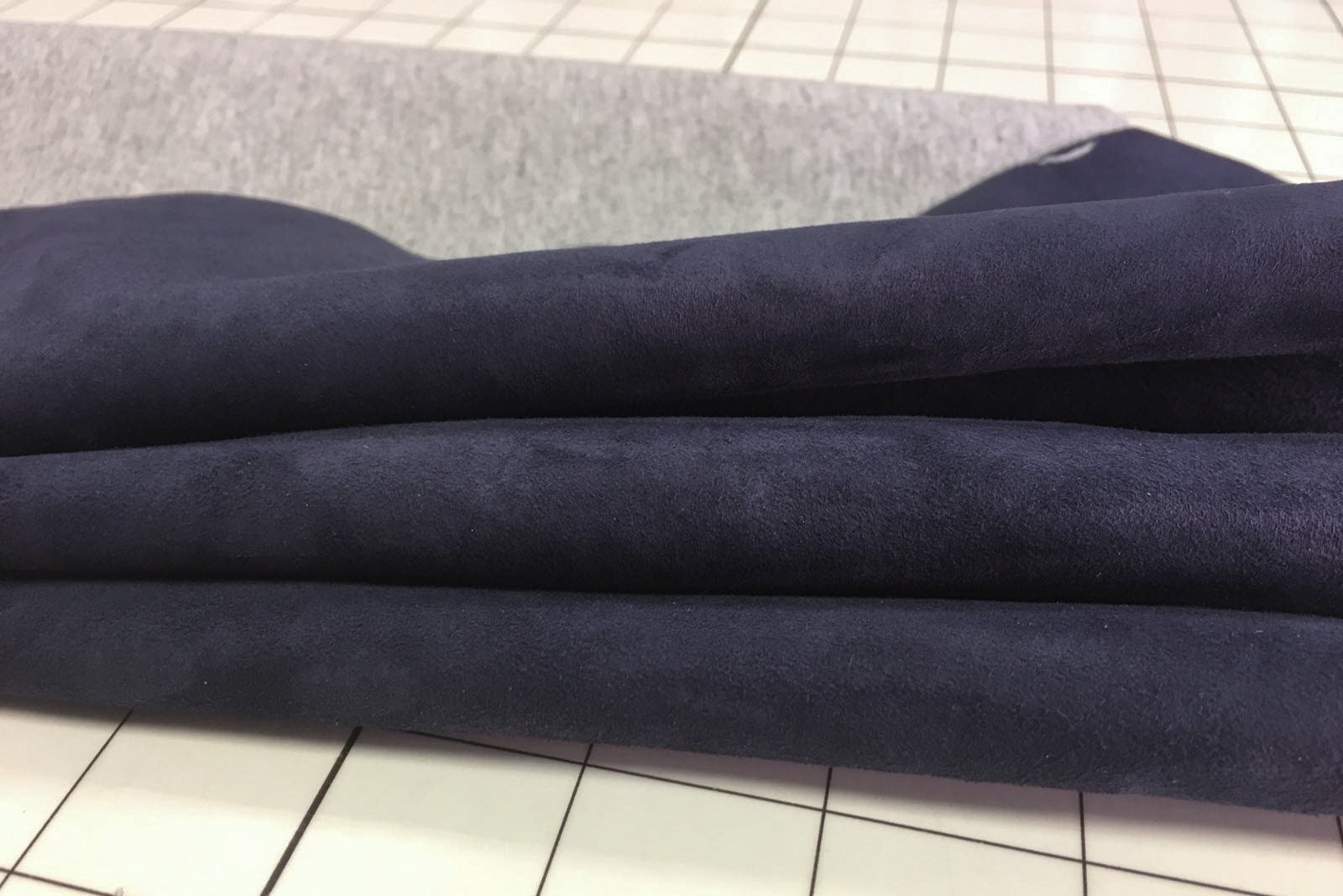 -Dark blue lambskin stretch leather, Blue suede fabric, Genuine sheepskin pelt, elastic suede material, leather material for sewing, lightweight and pleasant for touch suede material, Lambskin leather pieces are good for clothing, perfect for leggings, pencil skirt and all type of skin tight clothing.