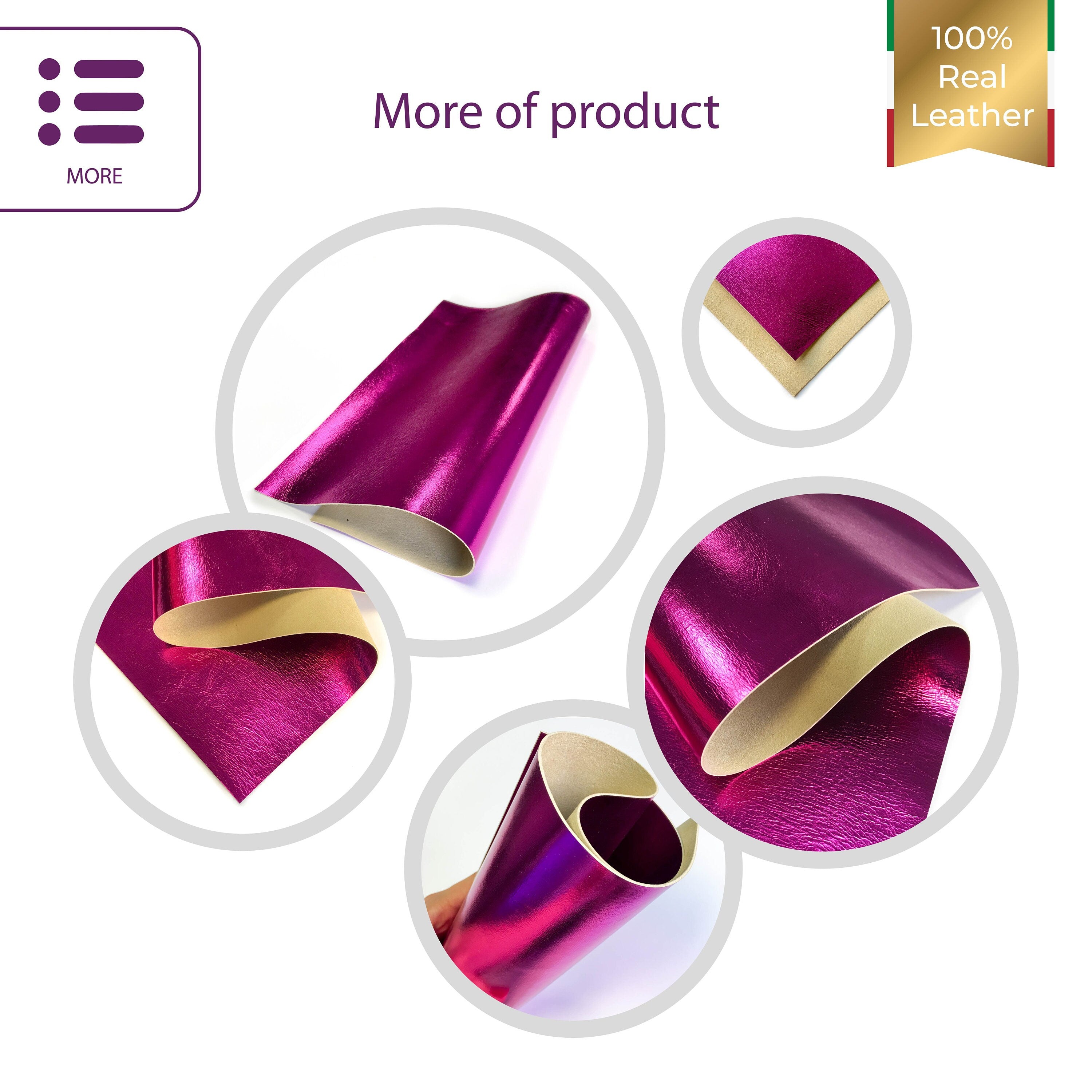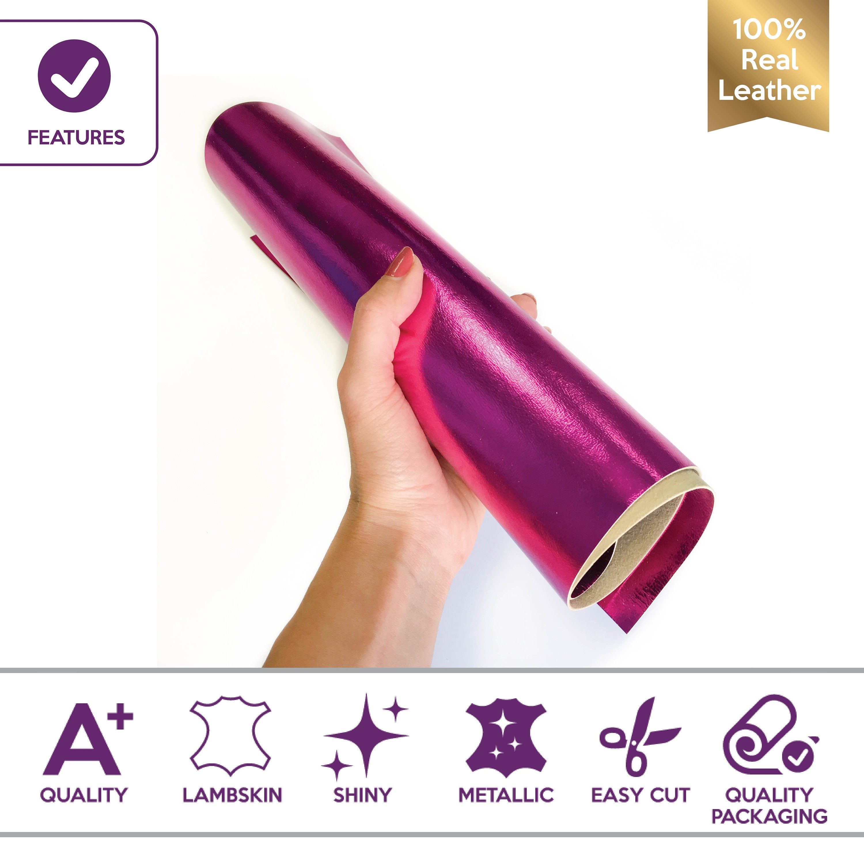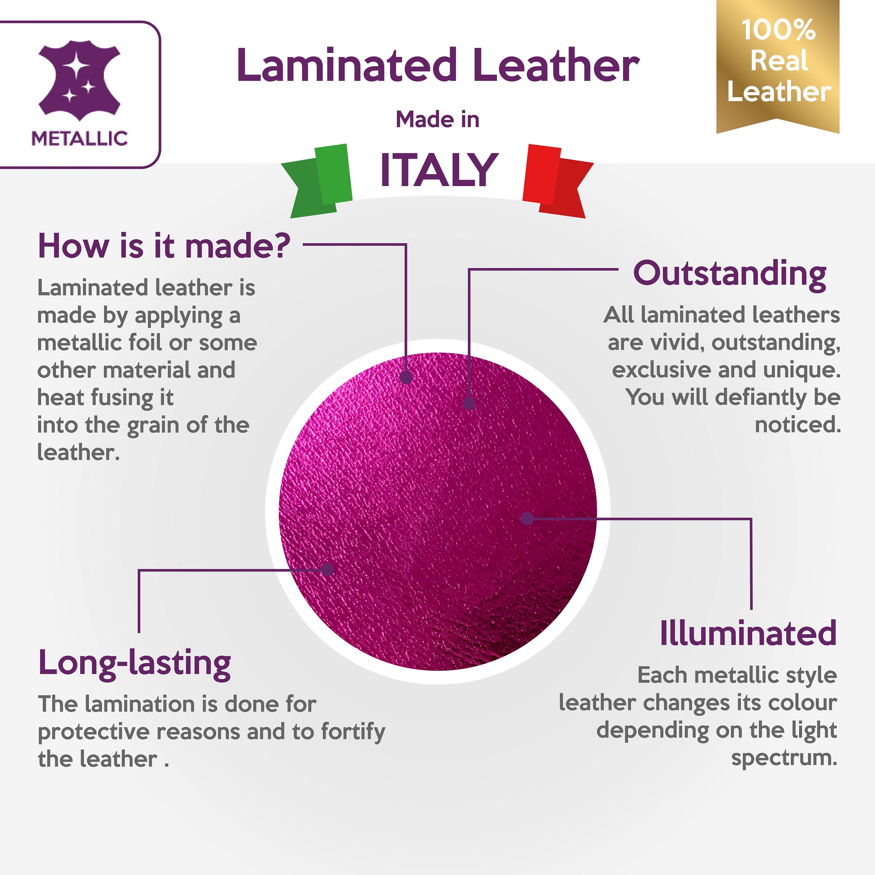 Bright Purple Metallic Leather Hide pieces are 100% real Sheep Leather, made in best Italian tanneries.