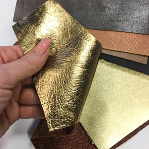Brown Lambskin Scrap Mix Of Different Print Texture Metallic Gold Renmants