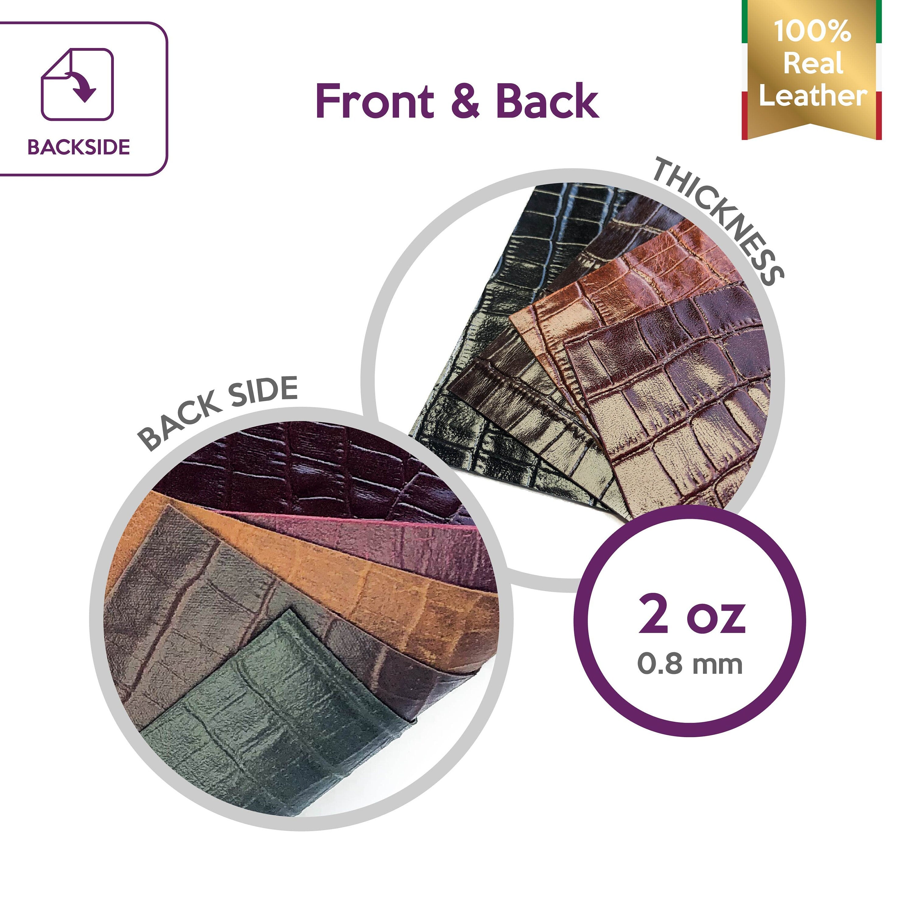 Four different colors. Amazing crocodile print for your best projects! Our mission is to provide only the best quality Italian leather samples to other leather workers, crafters of all kinds, small businesses or Etsy shop for your own projects.
