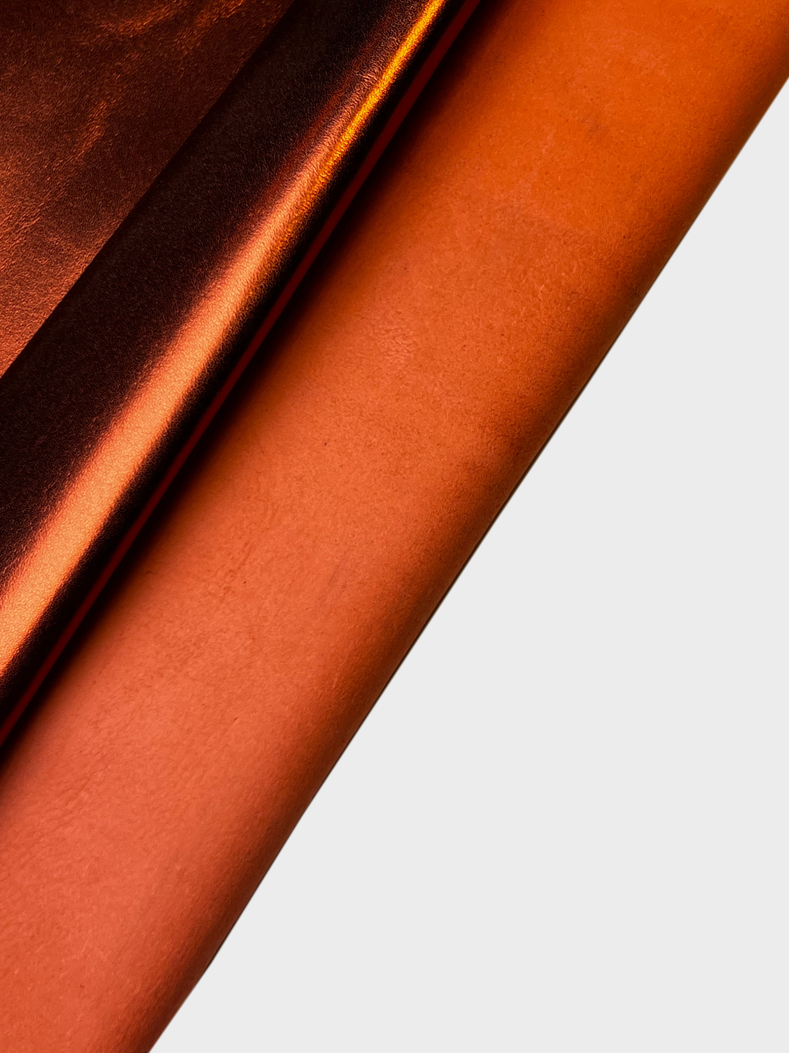 Metallic classic orange lambskin leather. Shiny thick pieces.