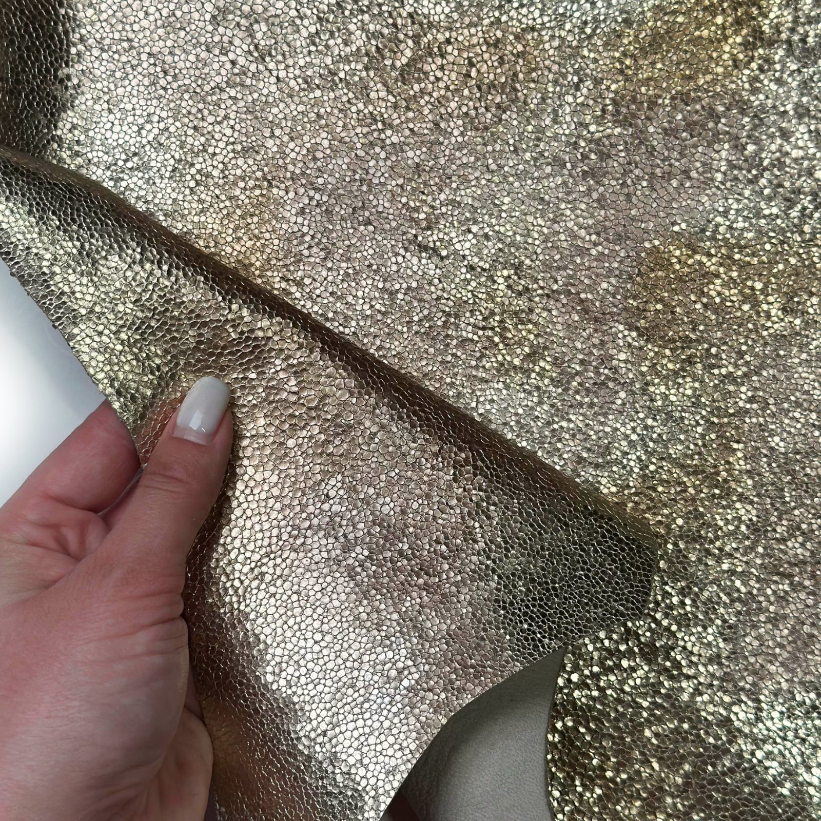 Crunchy Gold Leather With Rose Gold Spots With Textured Print.