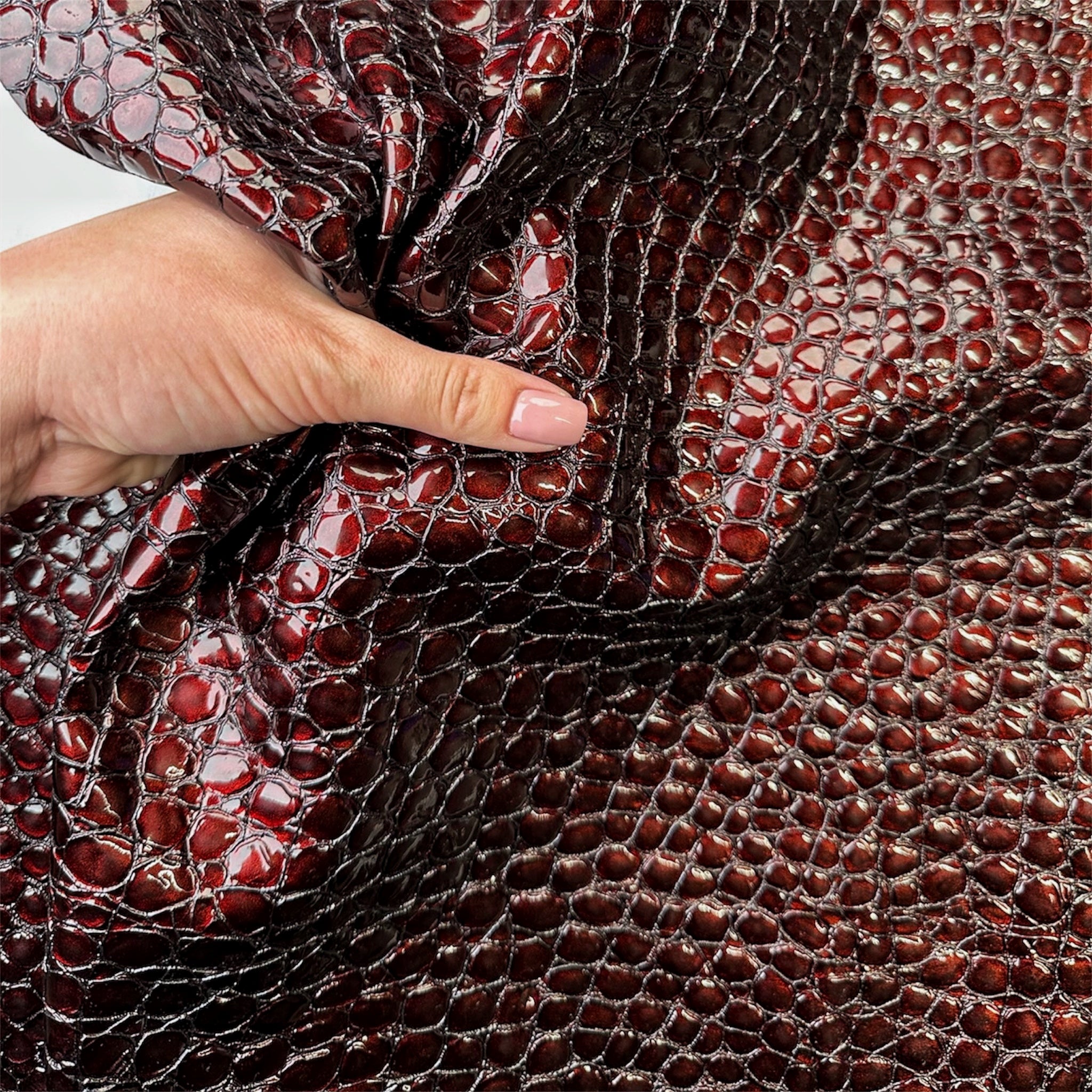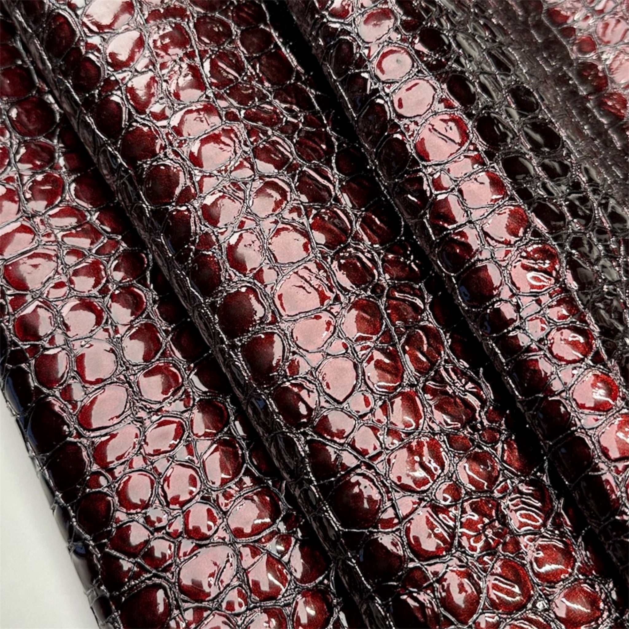 Home Dark Red Patent Leather With Embossed Crocodile Print 1.2-1.3mm/3-.3.25oz Croco 1544