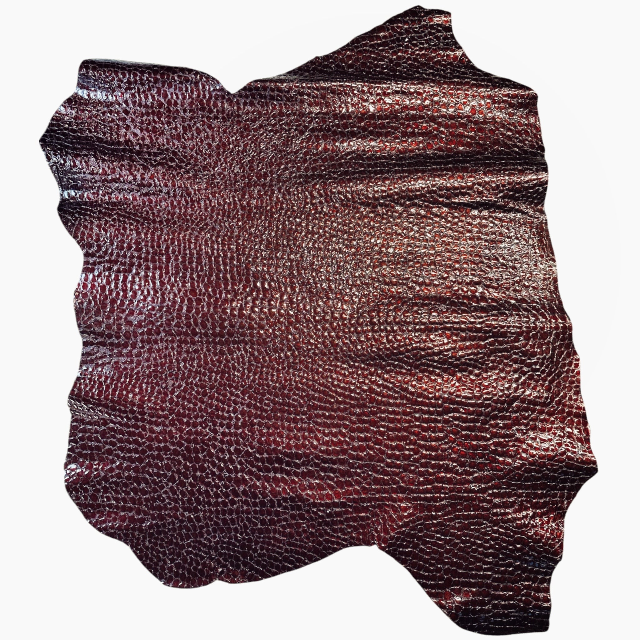 Beautiful patent lambskin leather with crocodile print. Thick genuine hides.