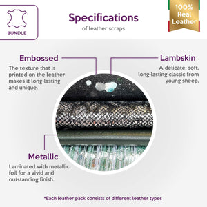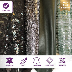 High-quality lambskin leather bundle of 4. Includes the softest sheepskin leather, beautiful metallics, and unique embossing.