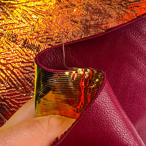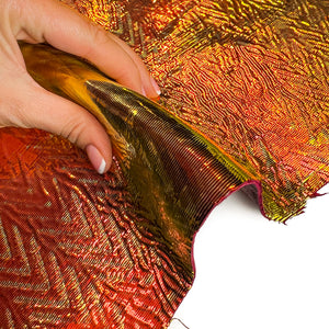 Holographic Leather With Zig Zag Print Yellow Red Orange Metallic RED HOLO Zig Zag 1456 1.9mm/4.5oz