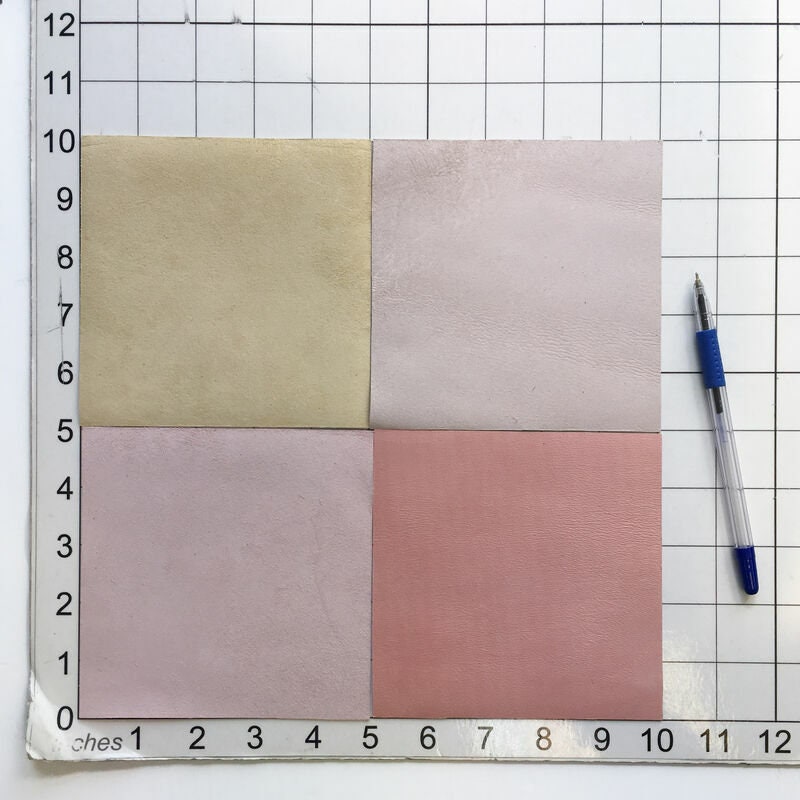 Light Pink Set 5x5 inches / 4 Genuine Leather Pieces 12x12 cm