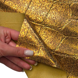 Add a touch of luxury to your creative projects with these limited edition gold metallic lambskin leather sheet. Featuring a unique embossed crocodile-style texture with unique print. Italian leather is both elegant and eye-catching. ✨