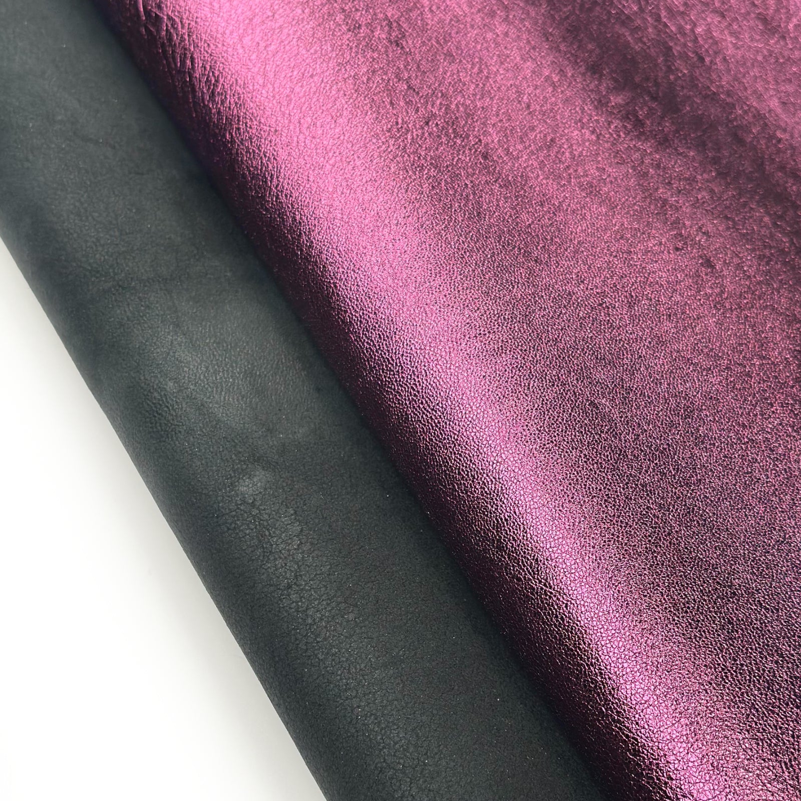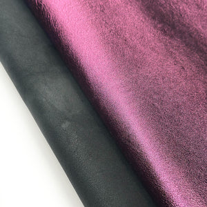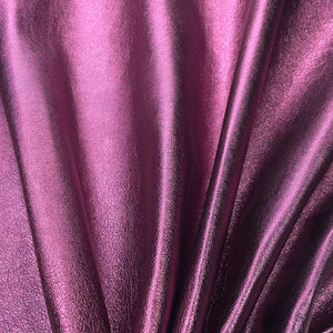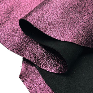 This luxurious lambskin leather features a vivid metallic magenta finish. Soft and flexible, yet durable, this leather is perfect for high-end DIY, accessories, and crafts.