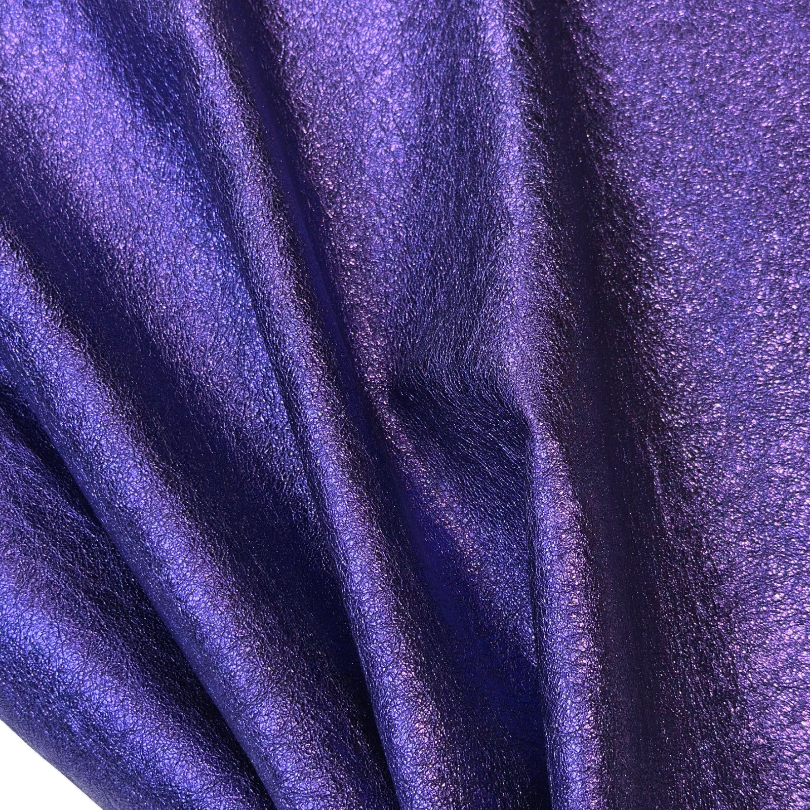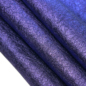 Premium quality lambskin leather hide with a bold metallic purple shine and crunchy texture. This hide is soft yet durable, perfect for high-end crafts and fashion applications. Direct from Italy - real, full-grain lamb leather. āØ