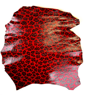Home Red Chruncy Patent Lambskin With Leopard Print 0.6-0.7mm/1.25-1.75oz / RED LEO 1448