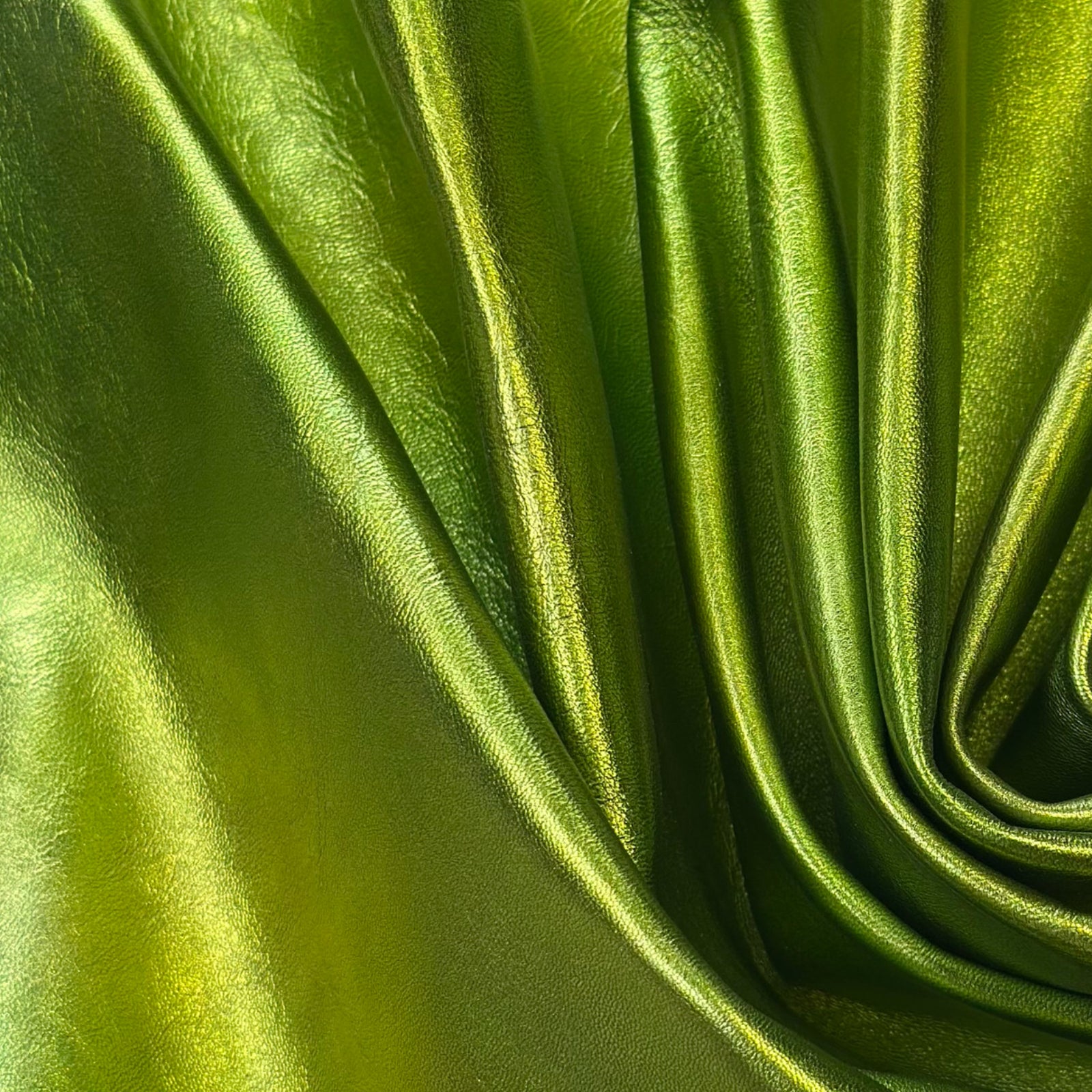 Bring your projects to life with this stunning metallic green lambskin featuring a subtle yellow hue that shifts under the light. Soft, supple, and perfect for high-end crafts, small accessories, fashion details, and more. ✨