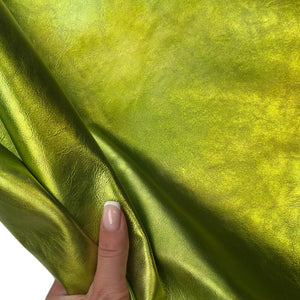 Shiny Metallic Green Lambskin Leather With Yellow Hue 0.8mm//2oz YellowishGreen 1648