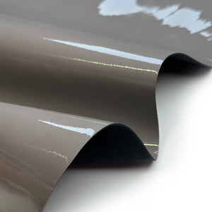 Make a bold, luxurious statement with this stunning taupe patent lambskin leather. Imported from Italy, this leather features a sleek, glossy finish that beautifully reflects light, perfect for eye-catching accessories and modern designs.