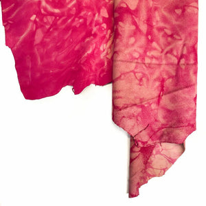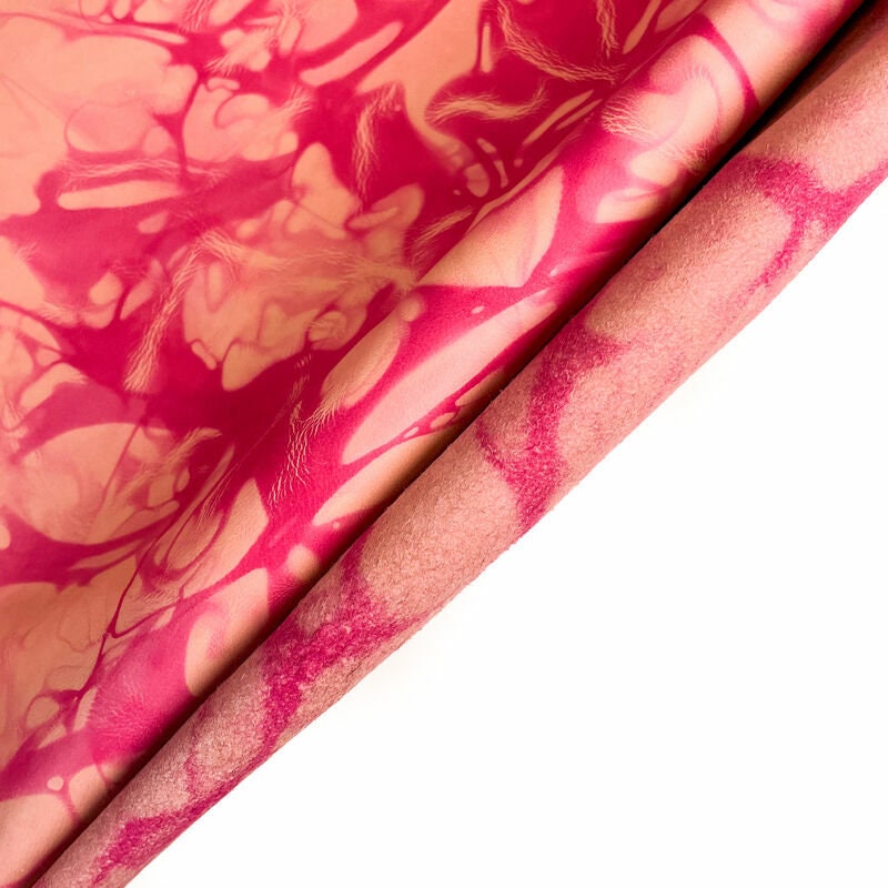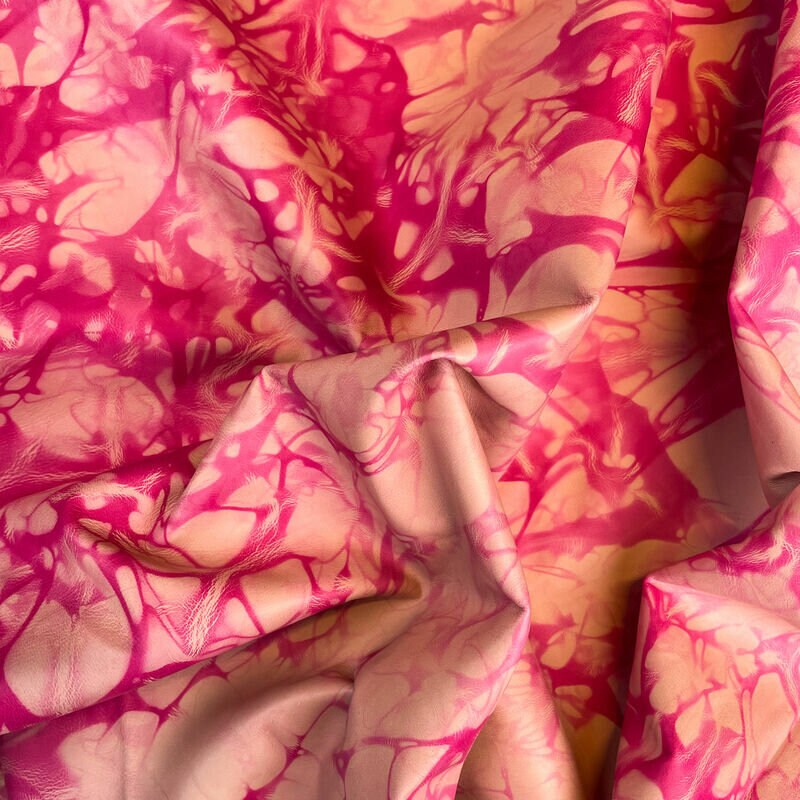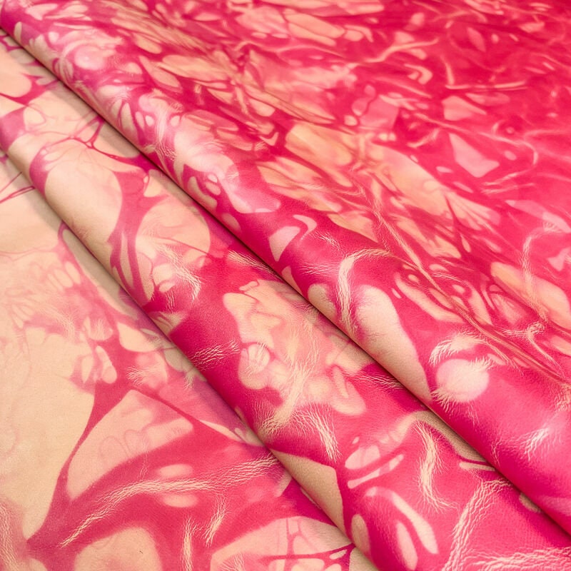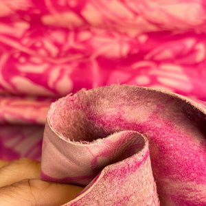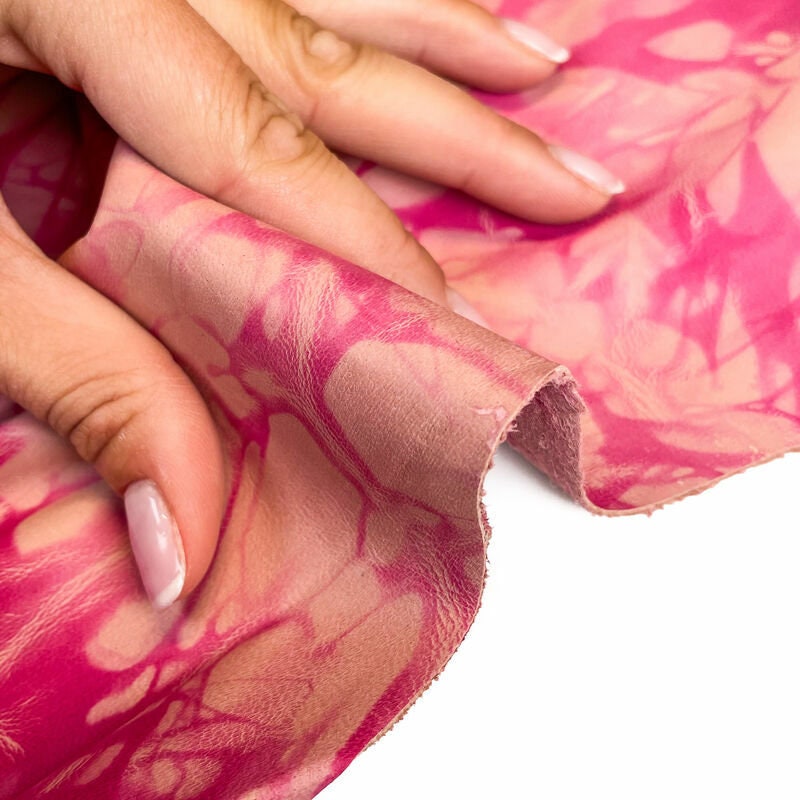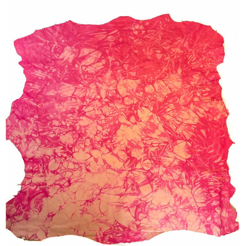 - Never ending trend - TIE DYE! These are genuine lambskin hides. Very soft material. Various beautiful pink shades. This leather fabric is very easy to work with because of its flexibility. Every single piece is unique and little bit different because of how tie dye print in made. Natural pieces are 0.6mm/1.5oz thin.