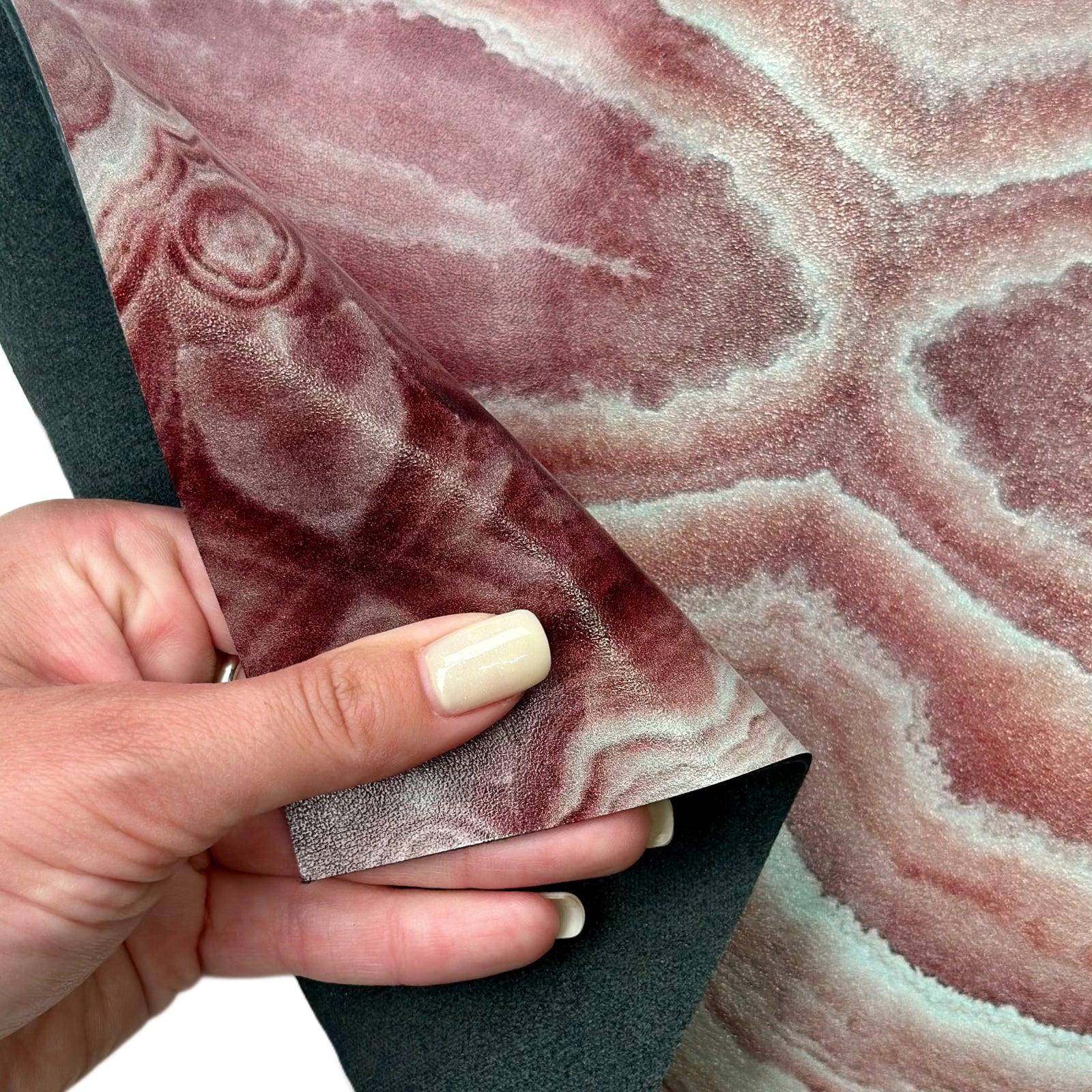 These genuine lambskin leather sheets feature a beautiful marbled wave pattern in rich pink and blush tones. Its flowing, organic design makes every piece unique and perfect for creative, luxury projects. 💮