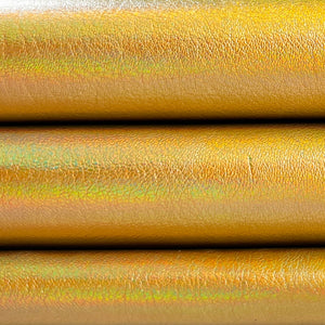 Shiny and soft metallic yellow gold hides with holographic shine. Amazing leather for bag and purse crafters will be long-lasting. Our mission is to provide only the highest quality Italian leather...